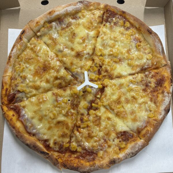paradicsomos alap, sajt, sonka, kukorica