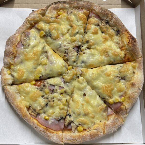 paradicsomos alap, sajt, sonka gomba, kukorica   A kép csak illusztráció